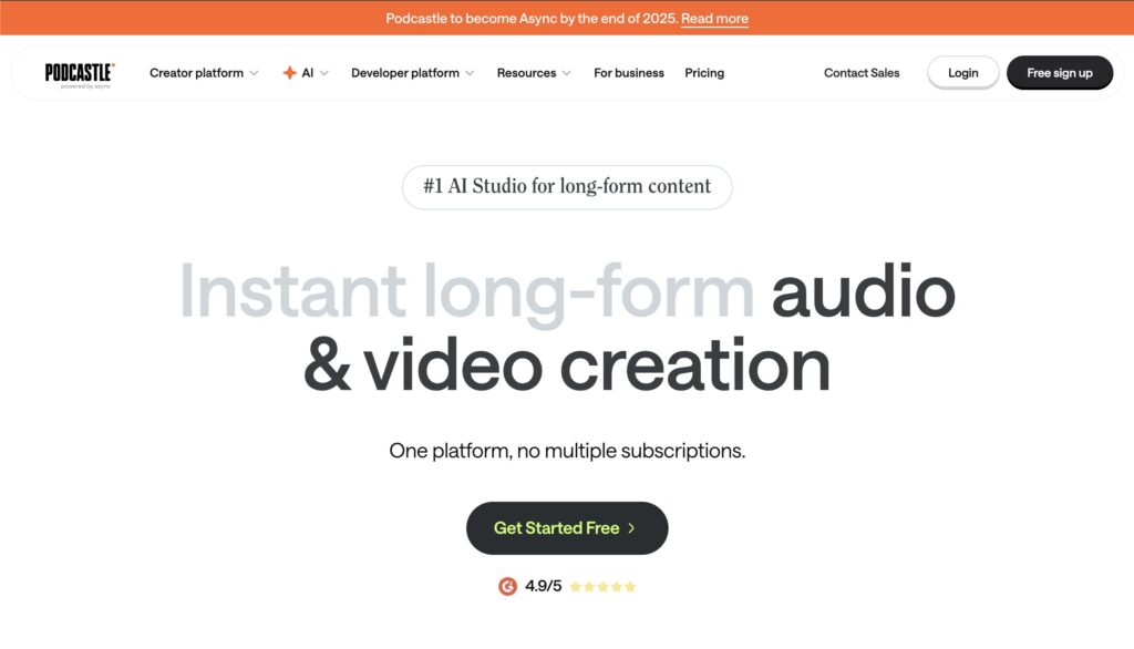 Podcastle by Async is an AI-powered, all-in-one content creation platform that makes it easy and fun to record, edit, enhance, and publish professional-quality audio and video right from your laptop, combining a user-friendly interface with powerful tools that help modern storytellers turn raw ideas into polished, studio-level productions without technical challenges. Whether you’re recording solo or collaborating remotely, Podcastle makes content creation fast, intuitive, and high-quality, with no technical skills required.