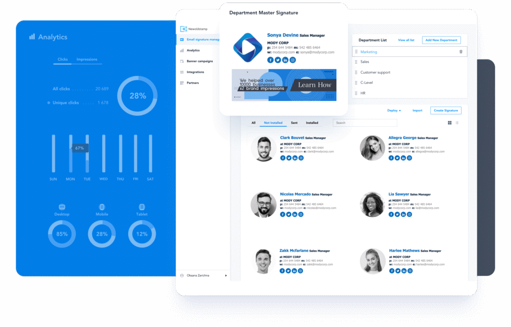 Newoldstamp is the leading email signature management platform that empowers to effortlessly design and implement brand-consistent signatures across the entire organization. A well-crafted standardized email signature isn’t just about contact information. It’s a powerful tool to connect with your target audience, potentially creating numerous sales opportunities every day. With Newoldstamp, your emails become a dynamic marketing asset. You can direct traffic to your website, generate leads, upsell products, and announce both online and offline events by adding clickable links, eye-catching banners with clear calls to action, and interactive buttons to your email signature.