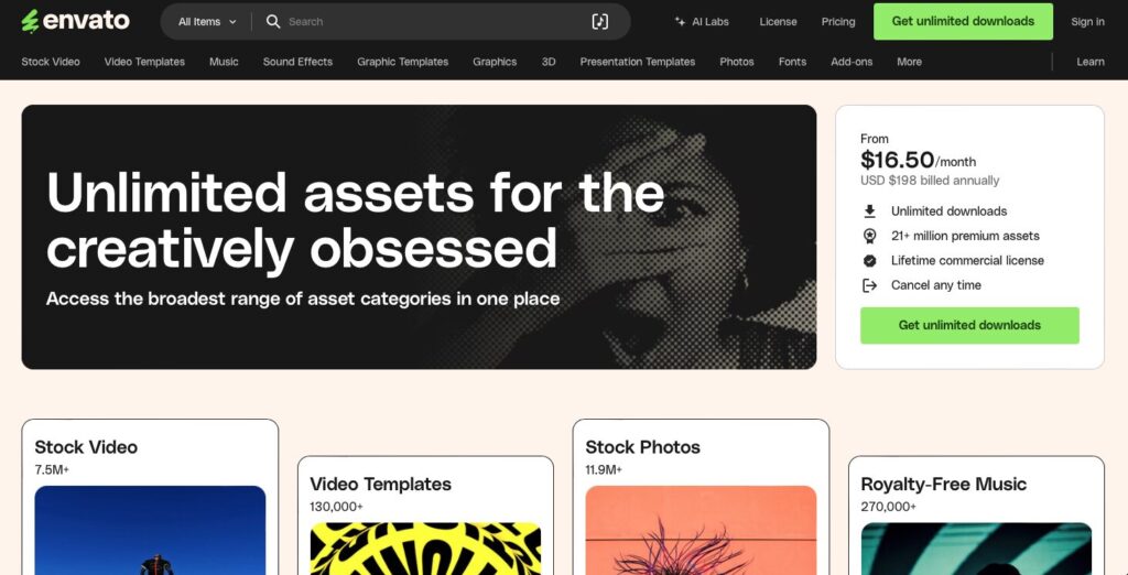 With unlimited downloads of millions of premium assets across every category imaginable, plus powerful AI tools for image generationand editing, video creation and more, Envato has everything you need to supercharge your creativity. With all the tools in one place, you’ll dive into your creative zone faster and bring out your best work in no time.
