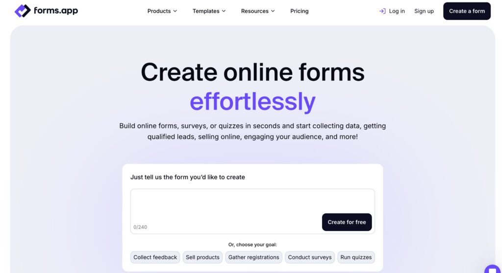 forms.app is an easy-to-use online form builder that helps businesses create online forms for applications, registrations, lead capture, sales orders, e-signatures, feedback, knowledge quizzes, and questionnaires. Plus, it can fit right into workflows and help automate data collection.