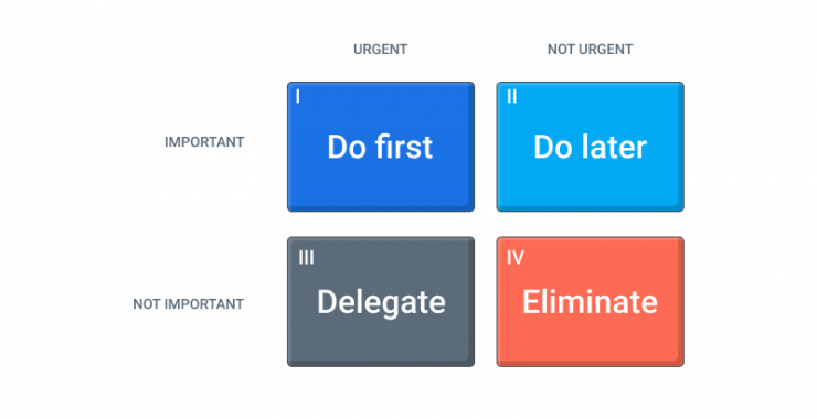 Con la ayuda de la Matriz de Eisenhower, un gestor puede clasificar las tareas del equipo en cuadrantes, divididos entre urgente y no urgente, e importante y no importante.