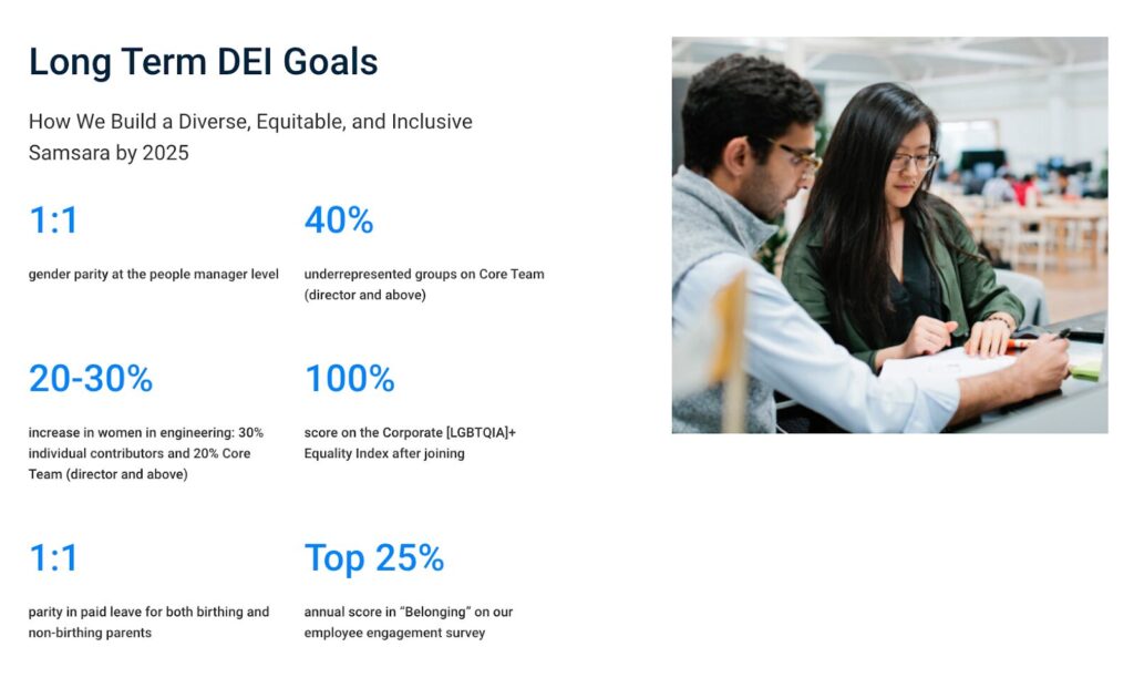 Samsara, líder en la industria de la telemática, comprende el valor que la diversidad aporta a la fuerza laboral y comparte abiertamente sus objetivos de diversidad de cara a 2025.