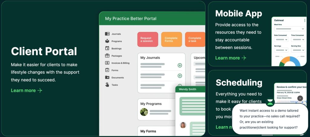 Practice Better is designed to support HIPAA-compliant practice management and telehealth workflows. It combines encrypted data storage, secure messaging, access controls, and audit trails across scheduling, charting, and virtual care. When used with appropriate administrative safeguards and BAAs, it can support compliance across the patient data lifecycle.