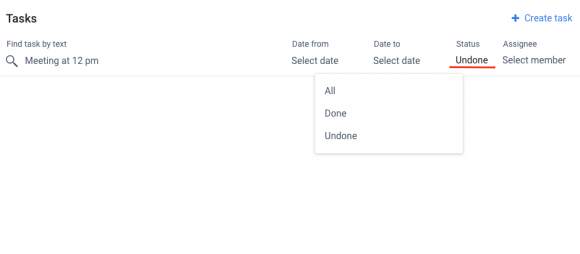 El filtro de Estado te brinda la oportunidad de filtrar tareas de acuerdo a su progreso.